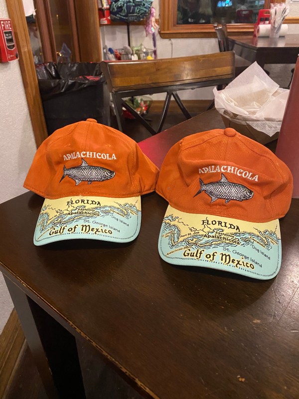 Today we left at 7:00am bound for Apalachicola. It’s a long slow ride through the Intracoastal Waterway. We made it to Apalachicola just fine and we went for diesel at a local facility. We took 219 gallons at $2.75 a gallon. We are tied up at a wall along the water. We walked to a local restaurant,Up The Creek, for dinner. It was great. I had fried flounder and it was delicious!!!! I left nothing but bones!!!! Back to the boat and off to bed. Forgot to add that Matt bought my first souvenir last night at dinner. Hats for Joanna and I. It’s cute!!!
