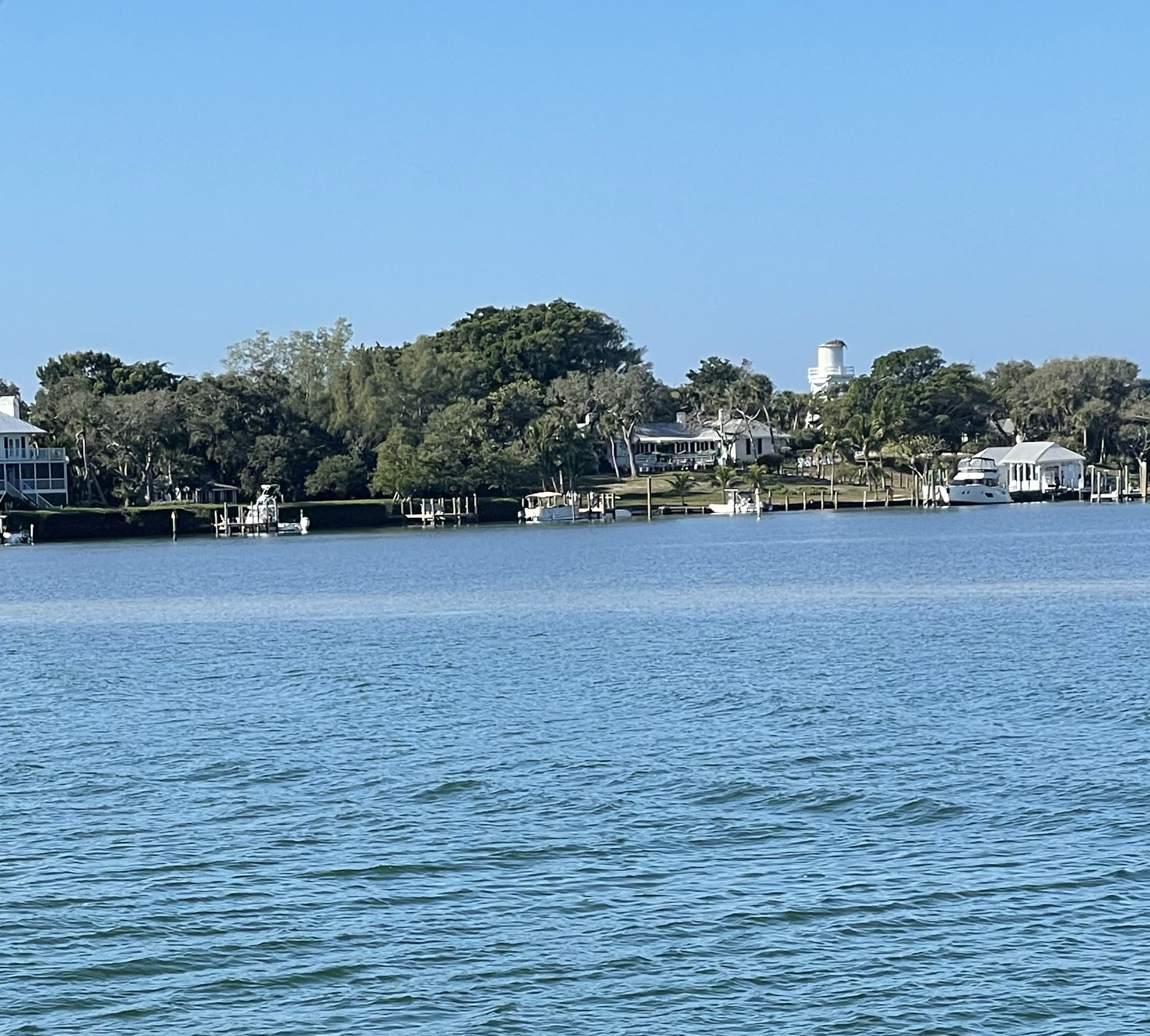 Boca Grande Marina to Ft. Myers, FL. We left Boca Grande Marina at 9:25am. We are in the Intercoastal Waterway. The water is filled up with boats!!! You would think today is a holiday!!! We passed Cabbage Key, the home of the original Cheeseburger in Paradise. We arrived in Ft. Meyers and went to get fuel and to pump out the holding tank — 230 gallons of diesel. Richard is happy with our fuel economy, 1-3/4 mile to the gallon which is good for a boat. We moved to our marina which was just down the channel. We are at Pink Shell Marina and all tied up at 2:15pm. Richard grilled hotdogs for our lunch. We had a lazy afternoon. For dinner we went to the Salty Crab restaurant. I had mahi and and shrimp. We made it back to the boat after a short trolley ride. We head to Marco Island tomorrow.