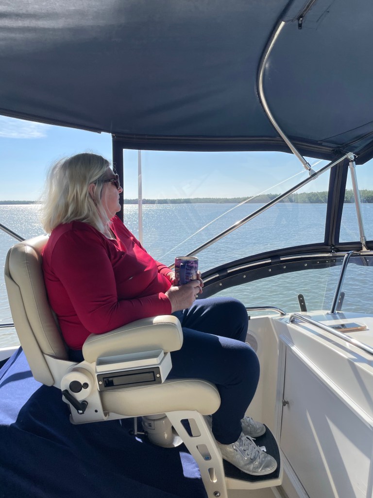It was a smooth boat ride and we made it with no problems. We are anchored in the middle of this beautiful cut!!! It is really pretty here!!!! We had a relaxing afternoon and evening. For dinner we cooked grilled chicken, rice with mushroom soup, and a salad. It was yummy!!! After a quiet night we went to bed. It was too quiet!!!