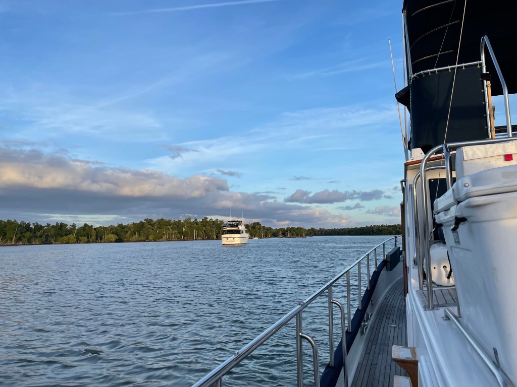We made it to our anchorage in Little Shark River right next to a Hatteras and another smaller boat that came in and anchored across from us. Must be a poplar place!!! This seems to be a pretty protected spot.