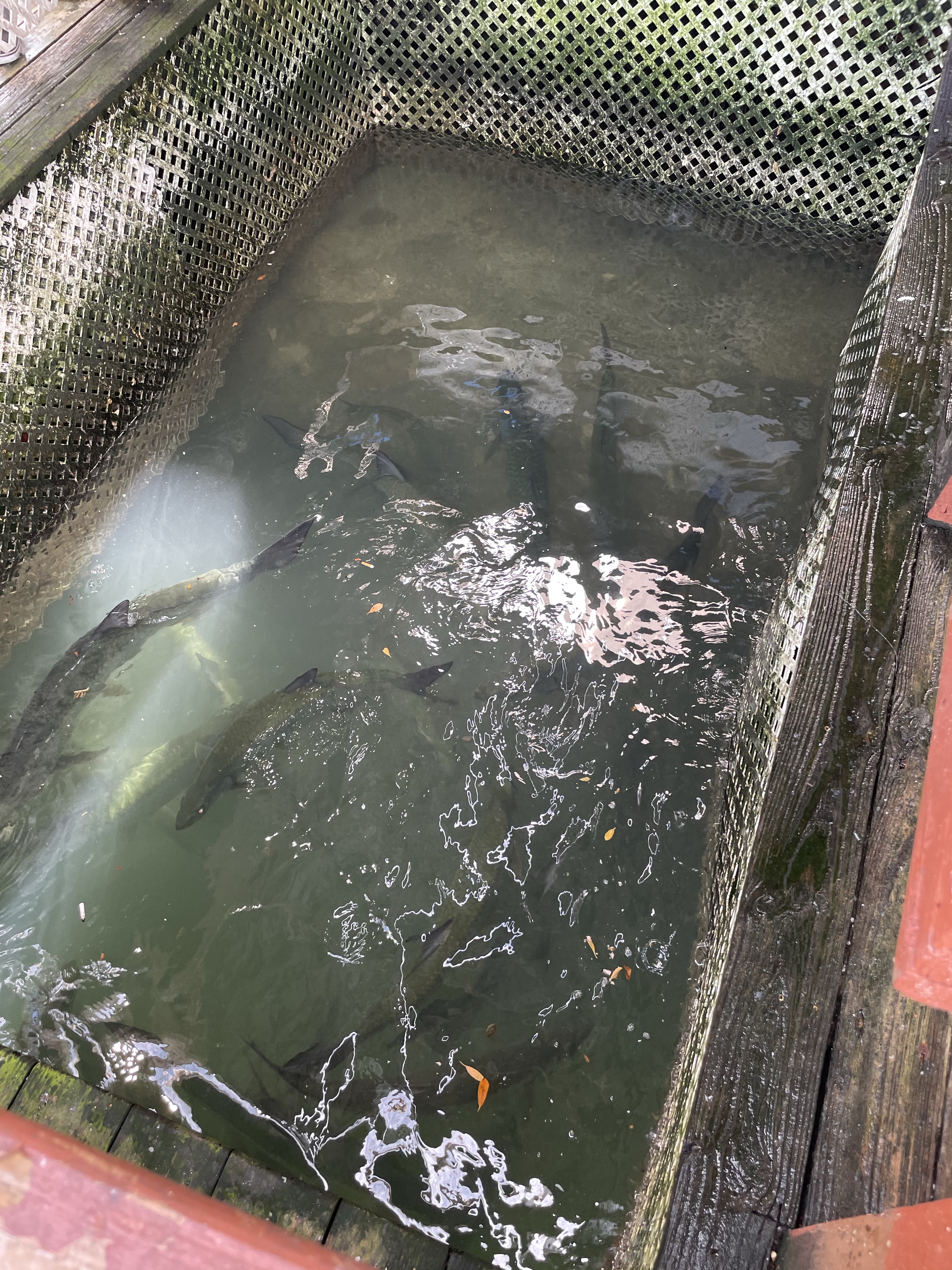 Richard Colby’s and Audrey got up early this morning and went deep sea fishing. They left around 7:00 am. They came back around 1:00 pm. They had a few fish that were caught — enough for us to have dinner tomorrow. They all had fun but I think it was a pretty rough day!!! The seas were 6-8 feet but they managed!!! The guides had designed a fish cleaning station that was stocked with Tarpon who acted as garbage disposals for all the fish scraps. Better than pelicans.