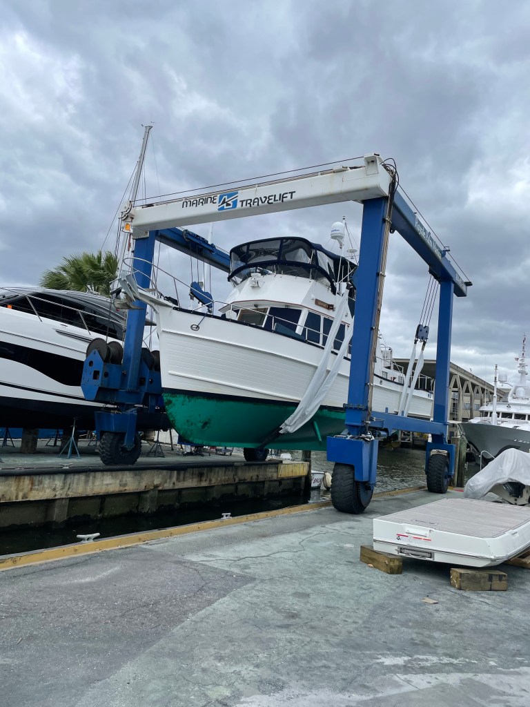 We got up early this morning and took the boat over to the haul out. We were there at 9 sharp. After we dropped it off we stopped for our first Starbucks since mid-January!