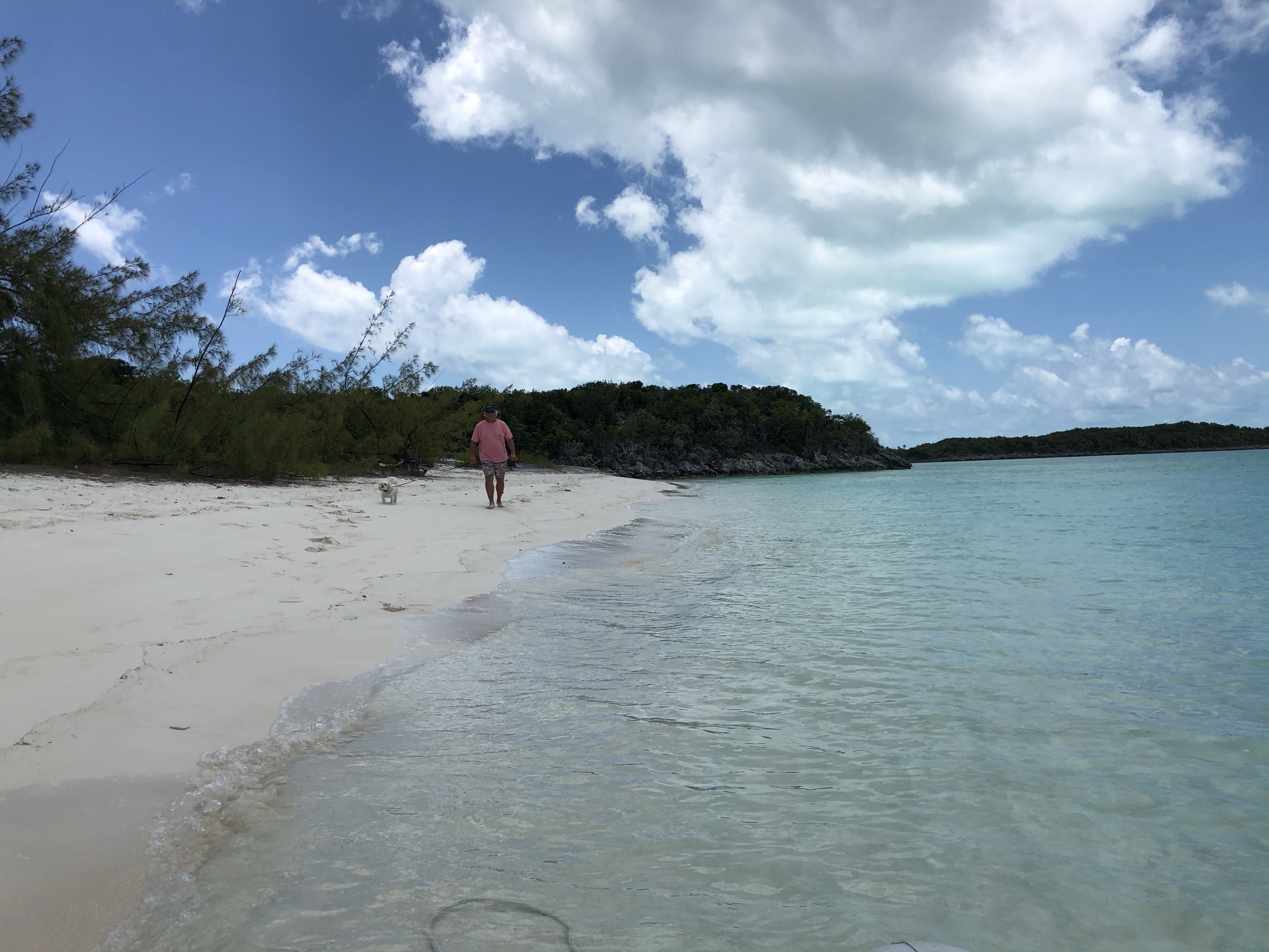 Today we moved from Normans Cay to Shroud Cay only about a ten mile trip!!! Shroud Cay is beautiful!!! We put our dingies in and headed out to the beach, first for Charlie who had been very patient with us waiting for his morning walk!!!!