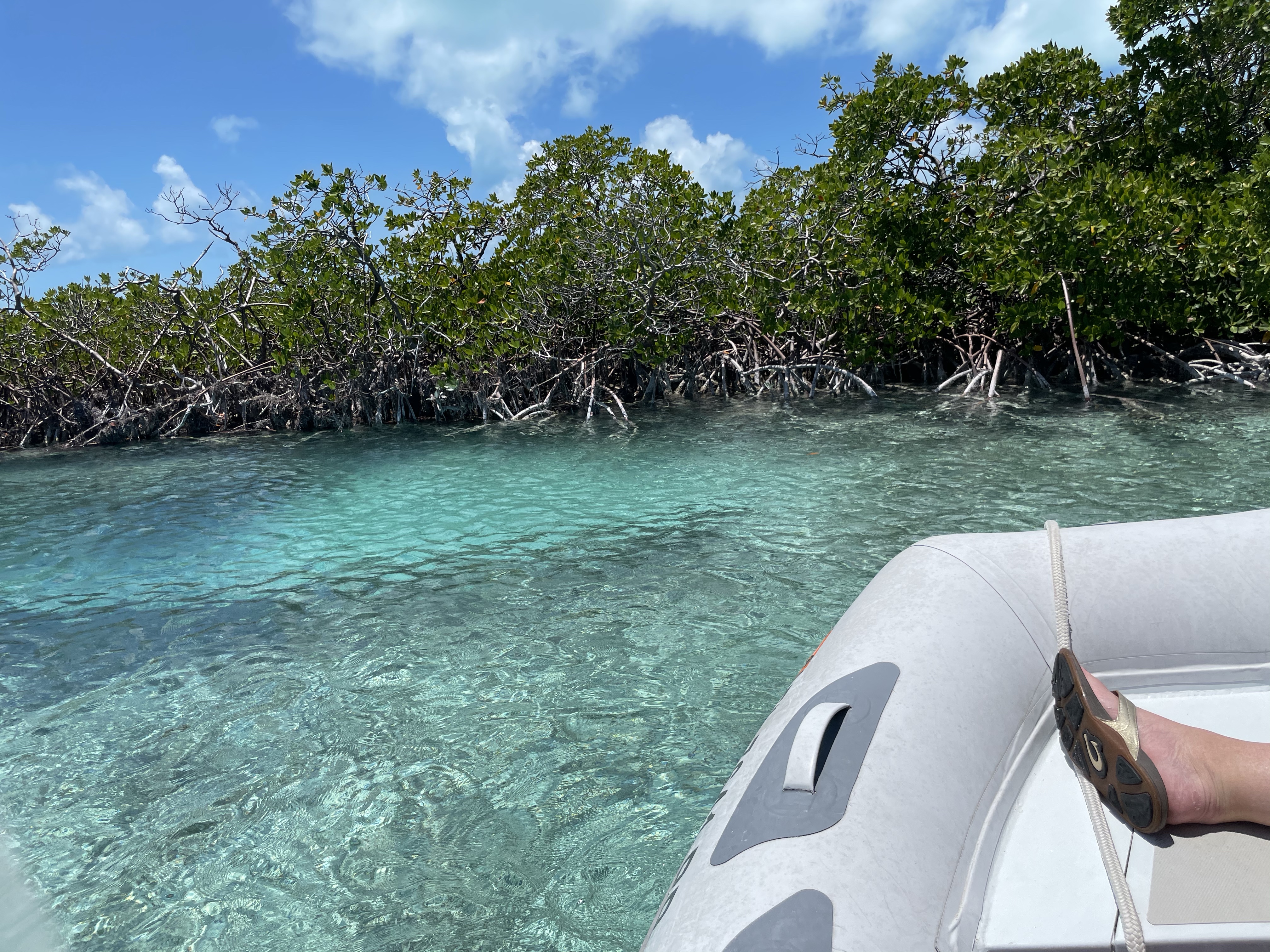 He enjoyed his walk on the beach then we loaded up and headed for the Exuma Cays Land & Sea Park. This is a dingy canal built through the mangroves taking you from the west side of Shroud Cay to the east side. We wandered all thru the park in our dingy, sipping cold beverages, and enjoying the beauty!!! It takes about 3 hours to get thru there.