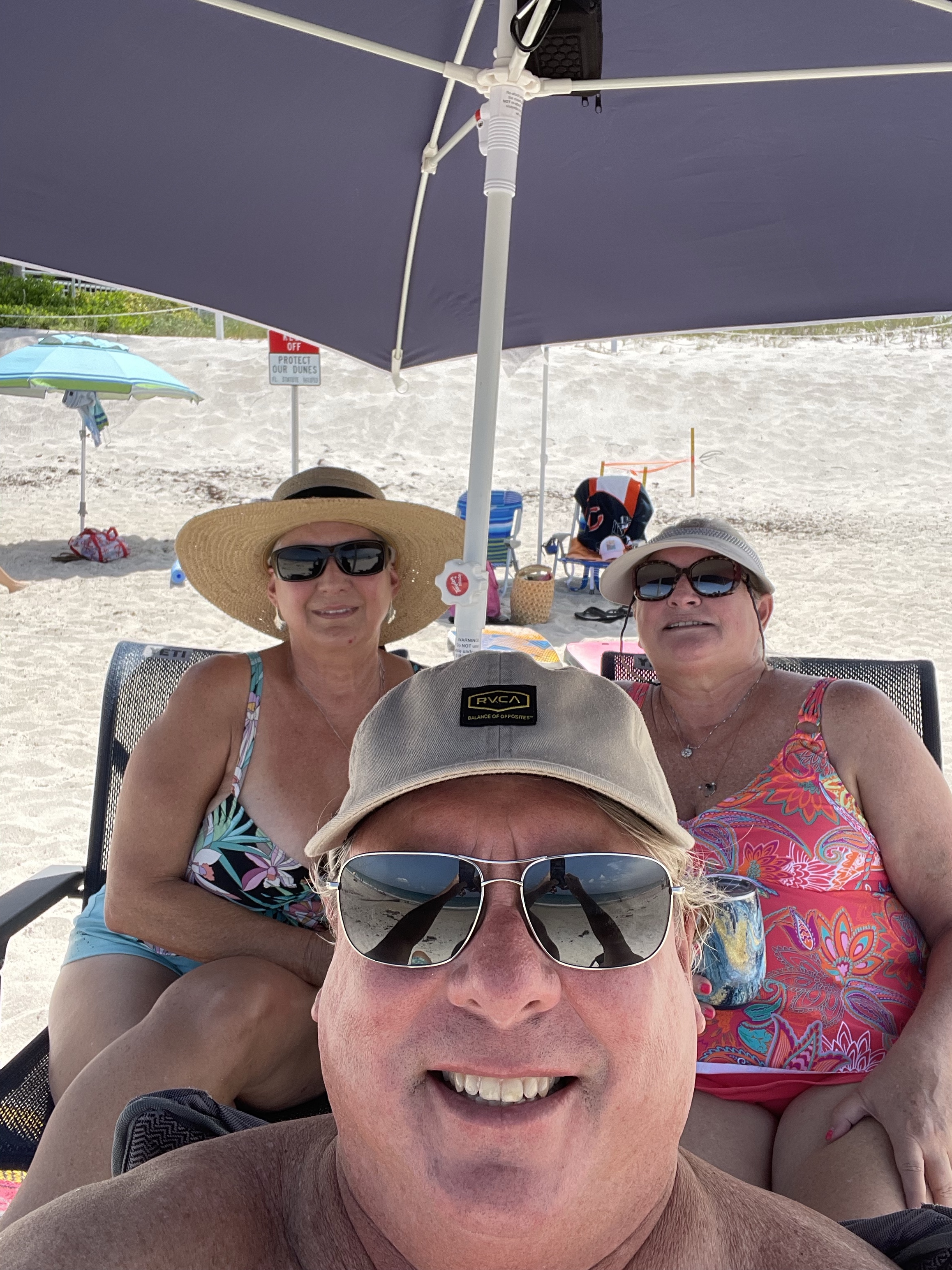 There is a nice boardwalk with restrooms leading to the beach. We picked a great spot and got settled in. Good people watching!!! We stayed out there for quite a while. Richard and Matt left to go get dinner for us. They brought back some yummy food and we ate on the beach. It was a good way to spend the afternoon!!!!