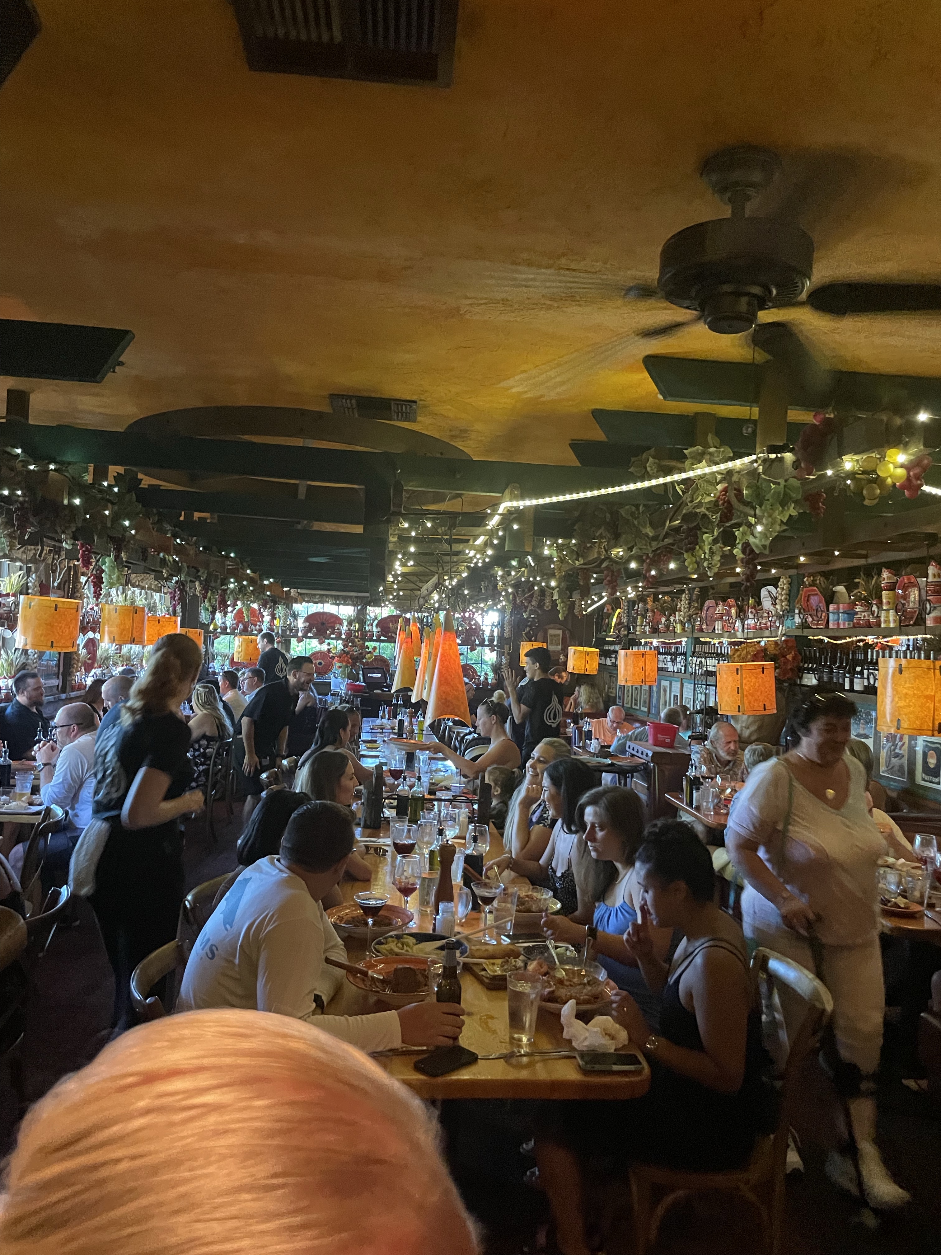 Finally seated at 6pm. The place is outstanding!!!! Well worth the wait. Very eclectic interior and delicious food and awesome dinner entertainment as well. We all had a wonderful meal!!! I had osso bucco and it was so yummy!!! Couldn’t eat it all and brought half of it home with me!!! Unfortunately Richard forgot it was in his backpack until the next day. We all had a great time at this restaurant!!!