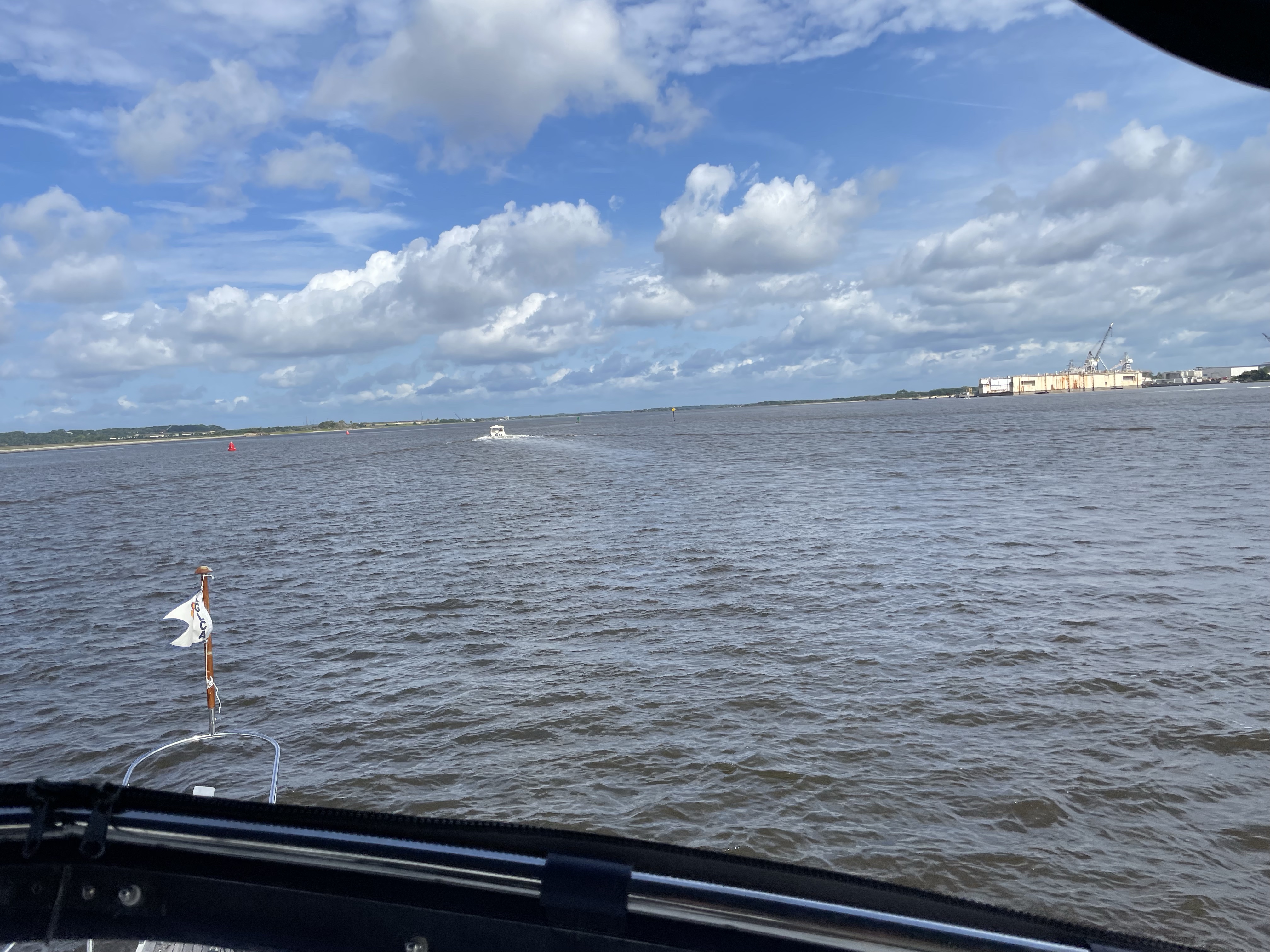 We are now at Fernandina Beach on Amelia Island. We can see Georgia from here! We were expecting a long day but we got here faster than expected since we had a favorable current most of the way. We did have a bit of drama when Richard ran aground. That hasn’t happened in a long time. He was able to maneuver off with nothing damaged but his pride.