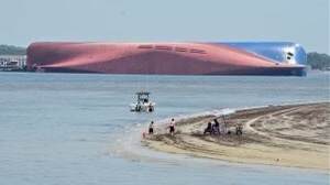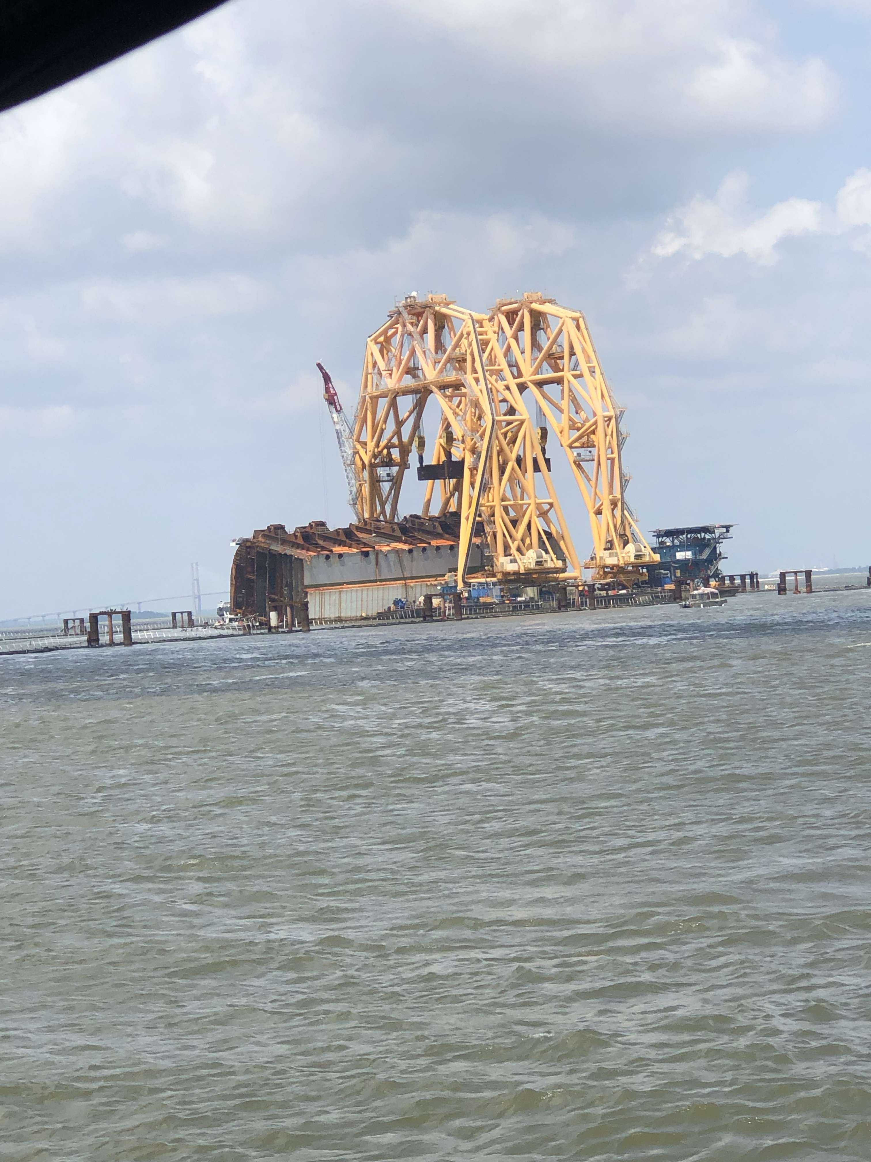 On the inlet to St. Simons there our salvage crews at work removing the capsized cargo ship Golden Ray. There were 4200 automobiles on board the Golden Ray when it capsized on Sept 8, 2019. The piece of equipment they are using to cut it apart is amazing.
