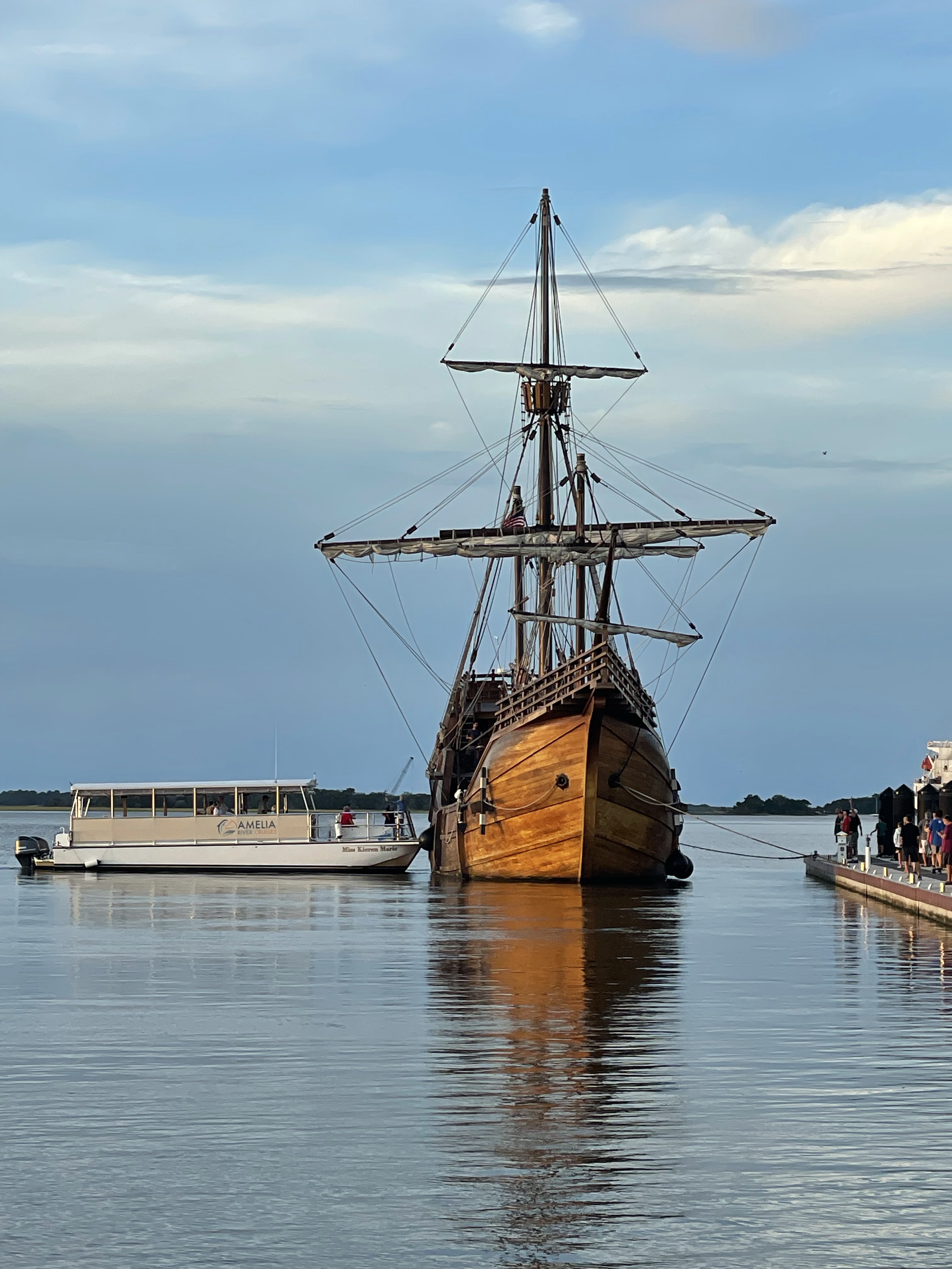 We got to Fernandina Beach at 2:00 pm. It was a pretty uneventful trip. That is always a good thing!!!! For dinner we went to the Salty Pelican. I had oysters for an appetizer and a short rib skillet for dinner. It was delicious!!!! While we were at dinner the Santa Maria arrived to dock up at the marina. They struggled in the current but eventually got her safely tied upBack to the boat and off to bed for me!!!