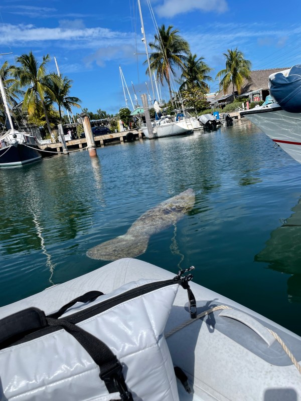 Today is another lazy day. I woke up this morning not feeling so hot so I stayed in my jammies all day. Richard went to the seafood market by dingy and got stone crab claws and some fish to grill for supper. That picked up my spirits! He saw a manatee near the market.