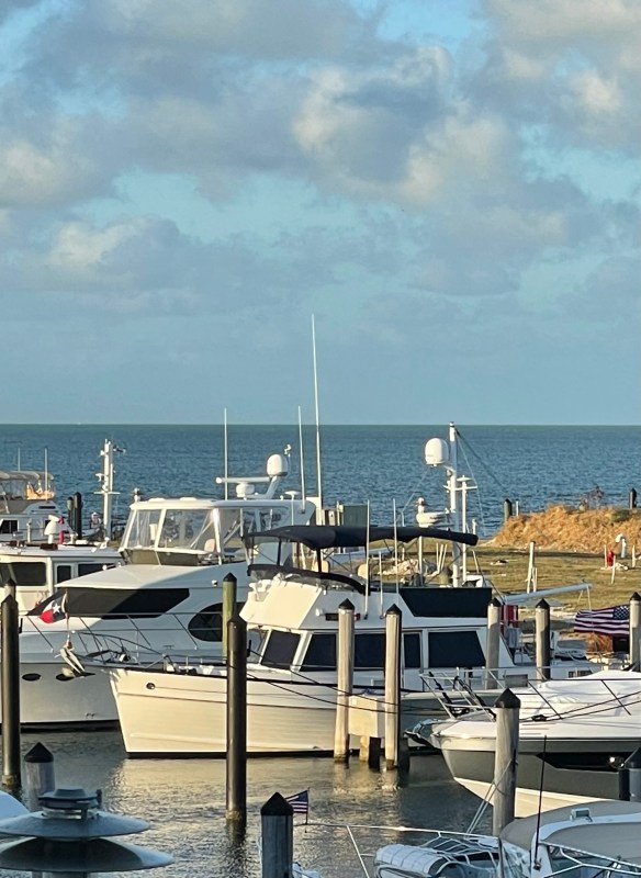 We had another small pool day. We got dressed and went to Keys Fishery at 4:00 for an early happy hour and dinner. We got there at 4:00 and the place was packed!!! No where to sit!!!! We finally found 4 seats at a small bar in the very back of the room!!! We need to come early next time!!! Richard and I sat down and Matt and Joanna joined us. We found a table in the center of the room and moved over there. We ordered 2 orders of crab claws that were delicious!!! We then ordered a dozen oysters and 2 more orders of crab claws!!! After that we were full and we walked back to the boat—about 2 blocks away. We were full and shortly ready for bed. Another day in paradise!!! I am loving this!!!