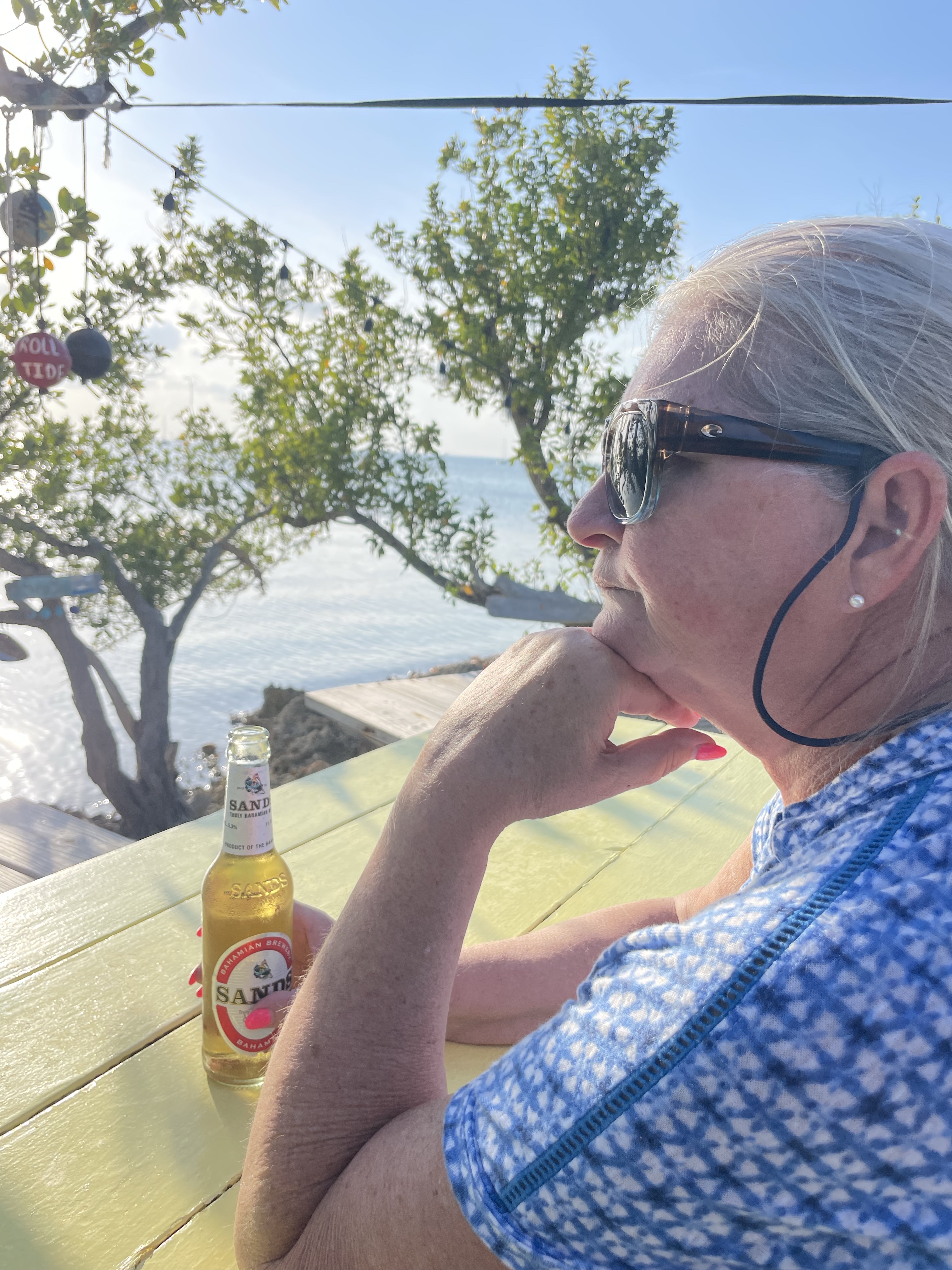 This morning we got up and Richard and David are down in the engine room working!!!! They worked down there for a couple of hours. We left on a little golf cart ride. We went to the Tranquil Turtle for drinks and a few snacks. We came back to the boat and cooked dinner of smoked sausage and veggies. Another amazing day in the water!!!