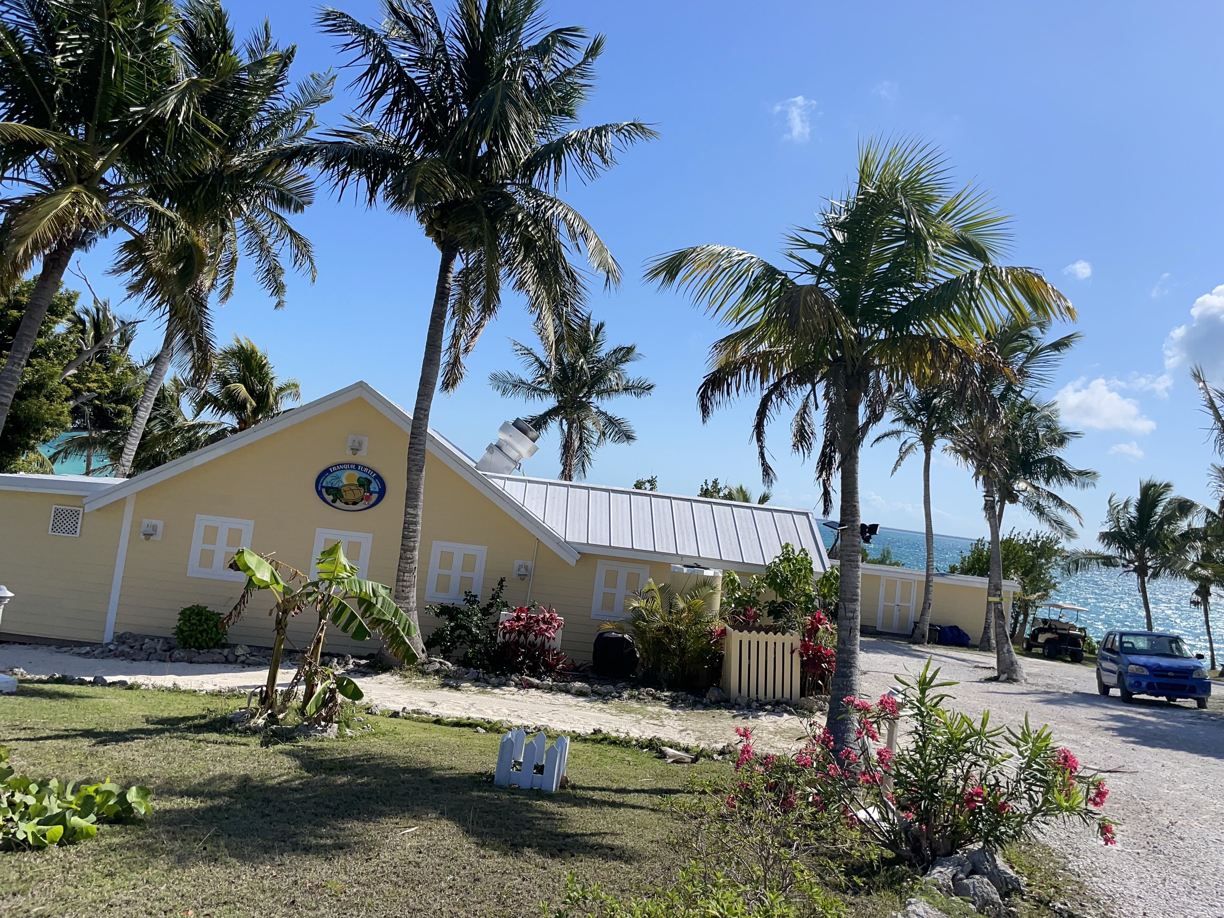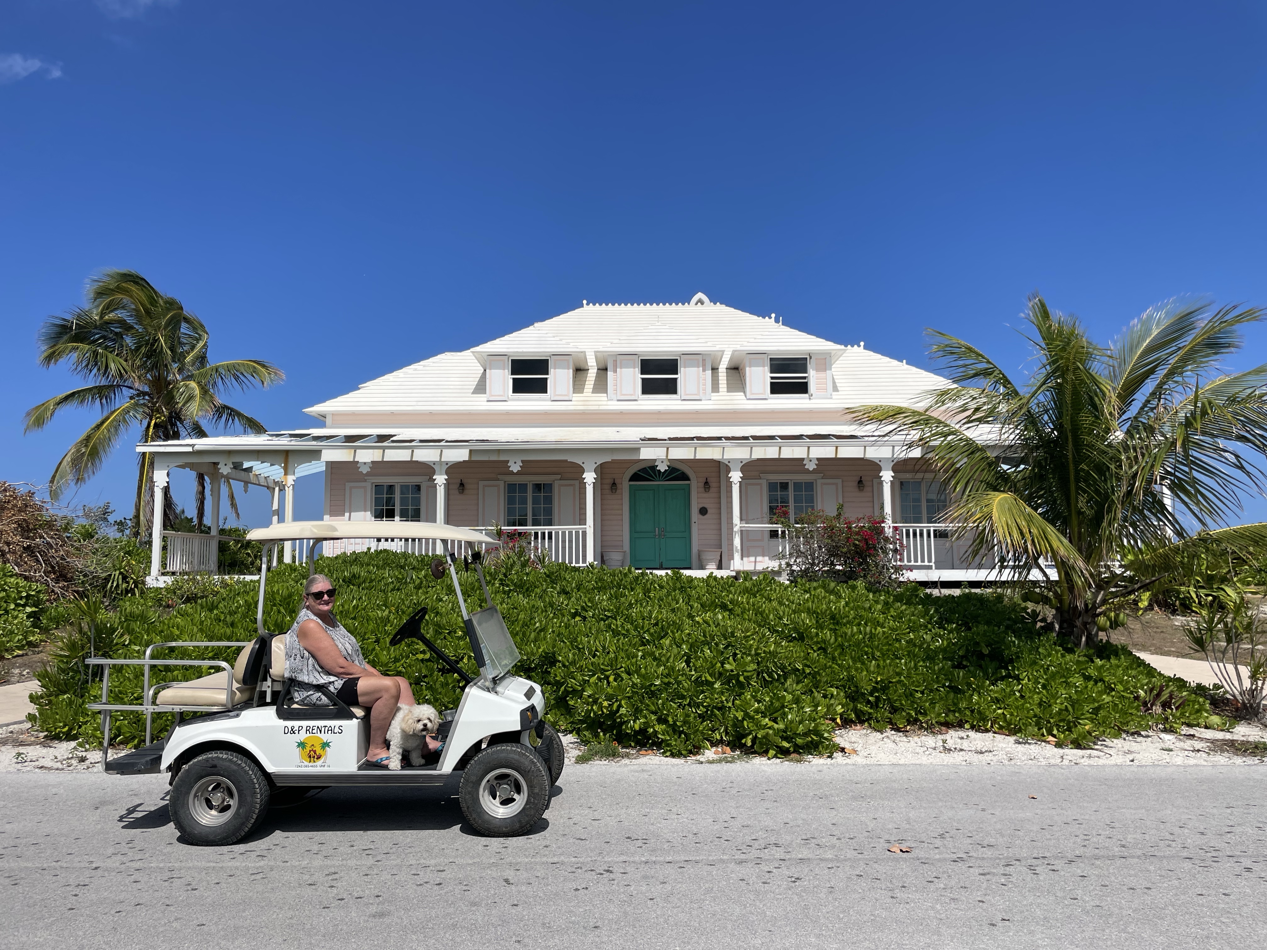 Richard ordered parts to fix the boat. He is airfreighting some and his brother, David, will bring some next week when they arrive for a visit. We had lunch at the Wrecking Tree restaurant. We explored around the island in the golf cart and found a house we rented in 2009 with several other couples from Memphis.