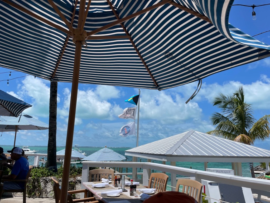 We moved over to Boat Harbour at Abaco Beach Resort in Marsh Harbor. It was a quick six mile journey. We spent the rest of the day in paradise just plunking around and relaxing!!! For dinner tonight we went to The Bistro for a fun last dinner out with David And Melissa. And boy was it ever delicious!!! We started with cocktails and then tequila shots!!! We all had very delicious meals!!! This restaurant is very well designed—the interior is beautiful!!!! What another fun day we have had!!!