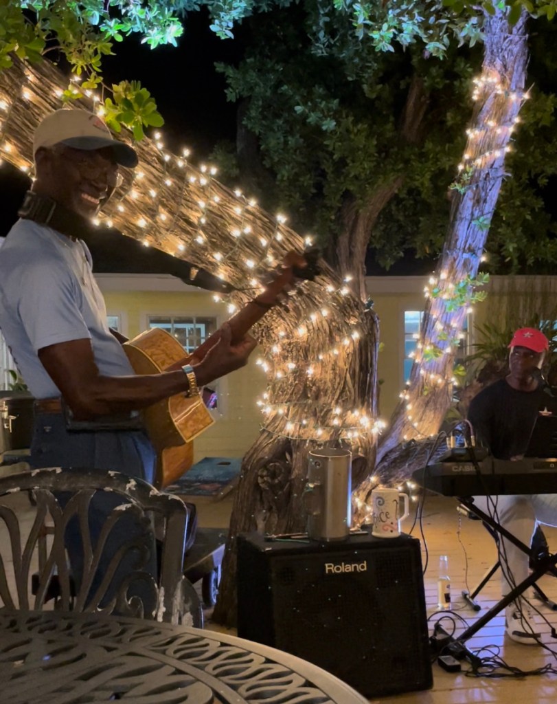 We had a wonderful dinner as always!!! And listened to some great music after dinner. Richard had to go to the boat for bug spray because the biting bugs were so bad!!! A little spray took care of them!!! We had a great night!!!