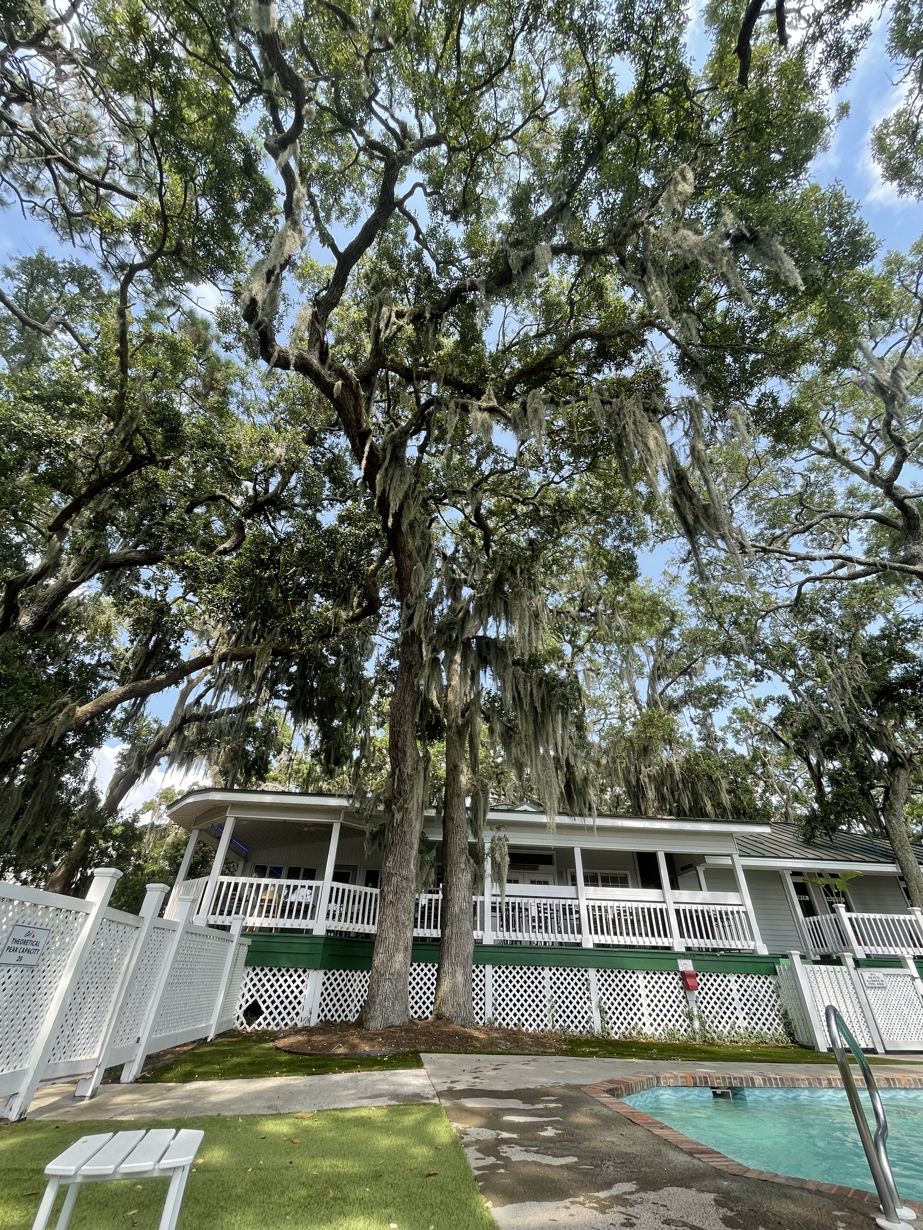 We left our dock slip at 9:30 this morning. We went over to the pump out station and emptied the holding tank. After that we were on our way to Jekyll island. We made it safely to Jekyll Island around 2:00. We are all tied up and the marina is nice. They have golf carts, a pool, and a restaurant. We took a golf cart into town to get some water bottles. It was a nice ride!!! We went up to the swimming pool for a while. It was so cold and refreshing. We went to the restaurant for dinner and it was a hopping place!!!! We had a good meal and saw someone we knew!!! We saw Sheila, Mike Enfingers wife!!! It’s a small world!!! Back to the boat and off to bed!!!