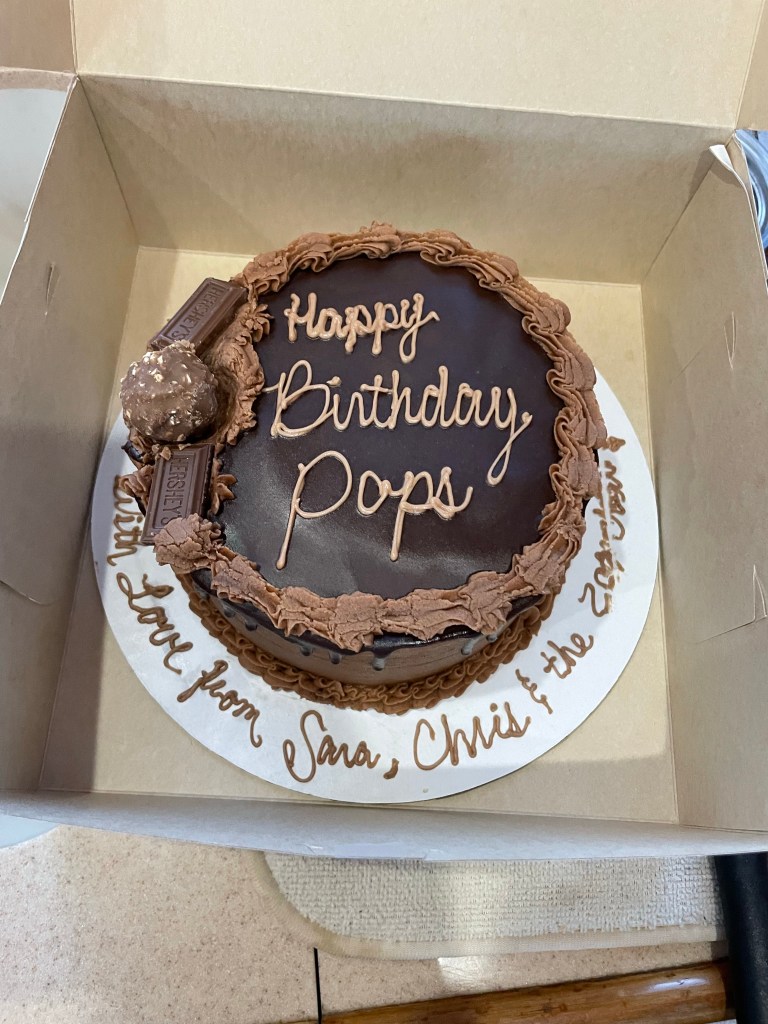 We both had a great meal (Richard had lamb chops) and a wonderful birthday cake desert that Sara’s family sent to Richard!!!