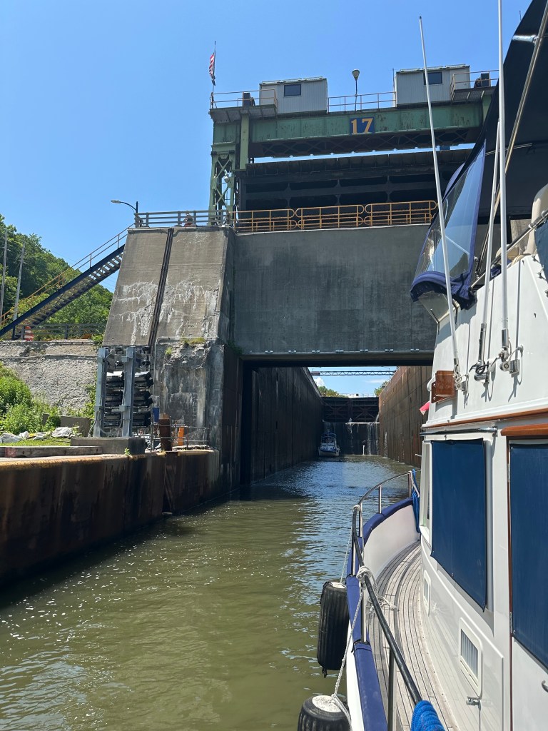 We have a series of locks to go thru this morning. We go thru seven locks total. The last lock (Erie Canal Lock 17) was the largest one we have been thru to date. It has a lock lift of 40.5 feet.
