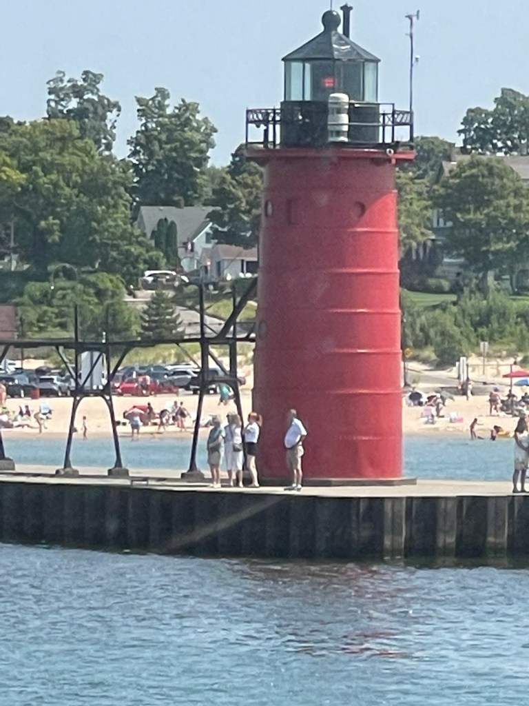 This morning we are up early ready for a 7:00 am departure. We’ve decided to make up some lost time and make a long day today traveling to Ludington MI. We leave the marina and are instantly in waves!!! It’s going to be a long rocky day!!! The wavy water stayed with us all day but wasn’t too uncomfortable.