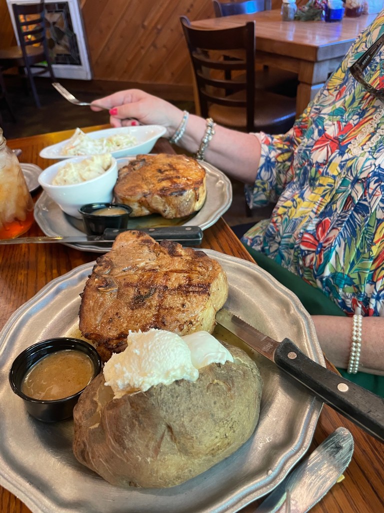 We both had a 2” thick pork chop that was delicious!!! All the sides were delicious and dessert was fabulous!!!!