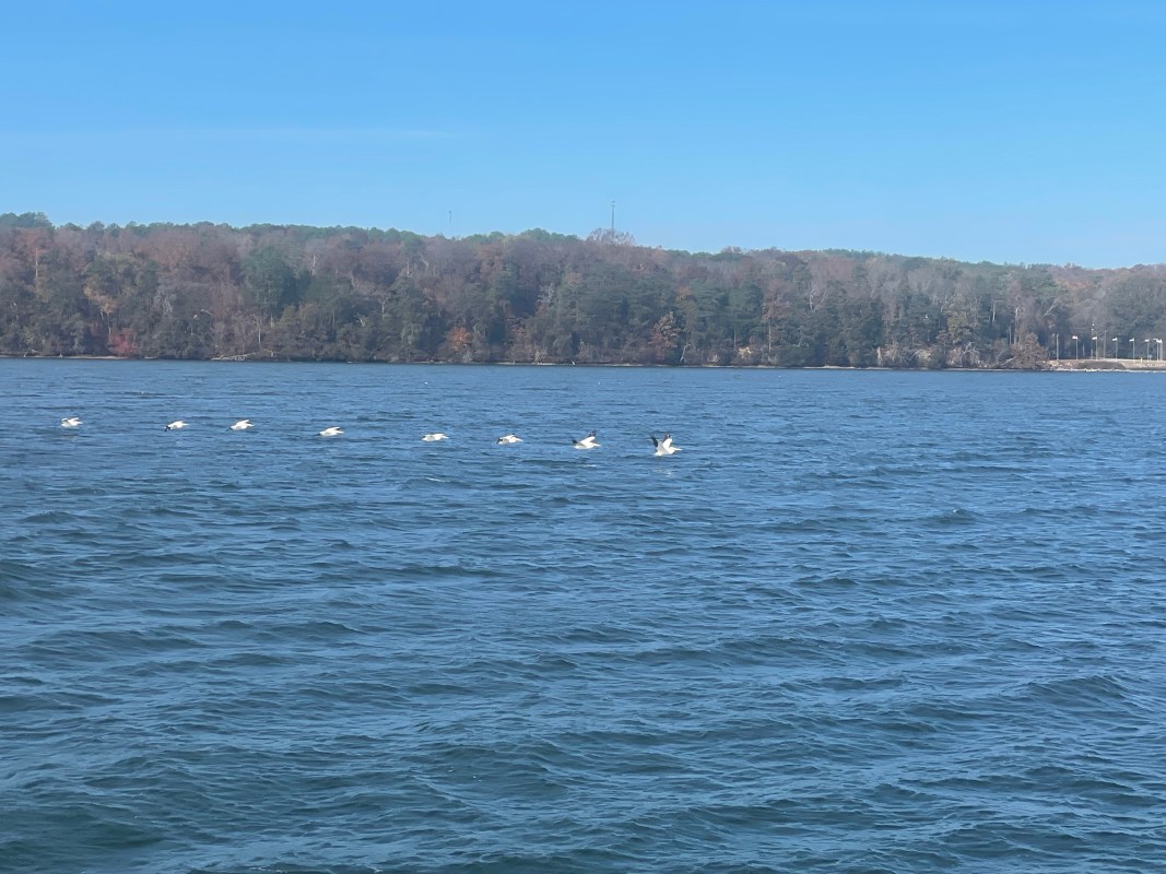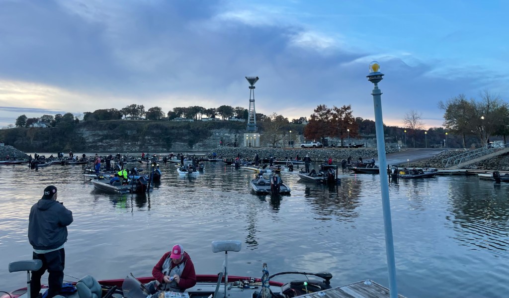 We got up this morning and left the fuel pier at 8:30 am. Today we are going to Aqua Yacht Harbor on Lake Pickwick. Richard was up earlier. A bass fishing tournament was using the marina as the host site. He watched the blessing of the fleet and rallying of the fisherman to good old Southern Rock! And then 120 bass boats were released from the marina basin!