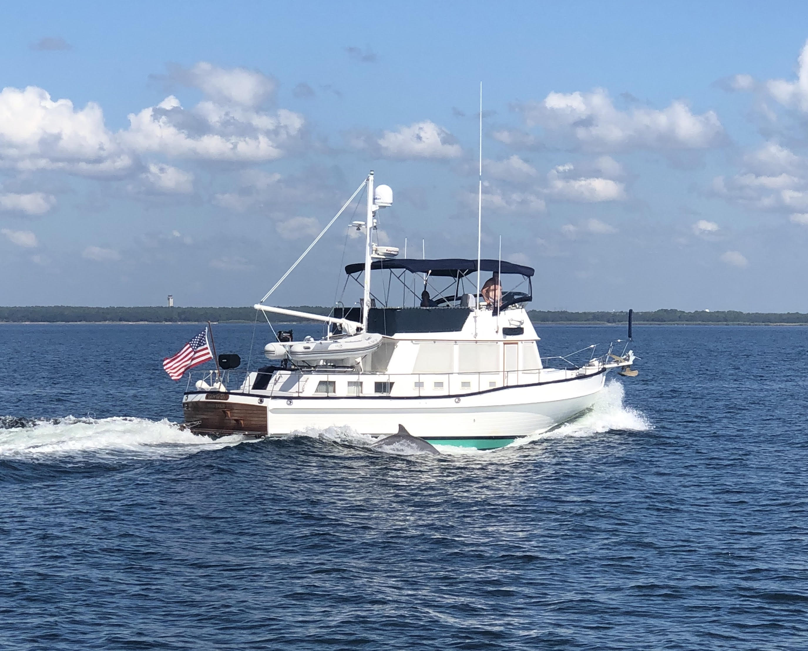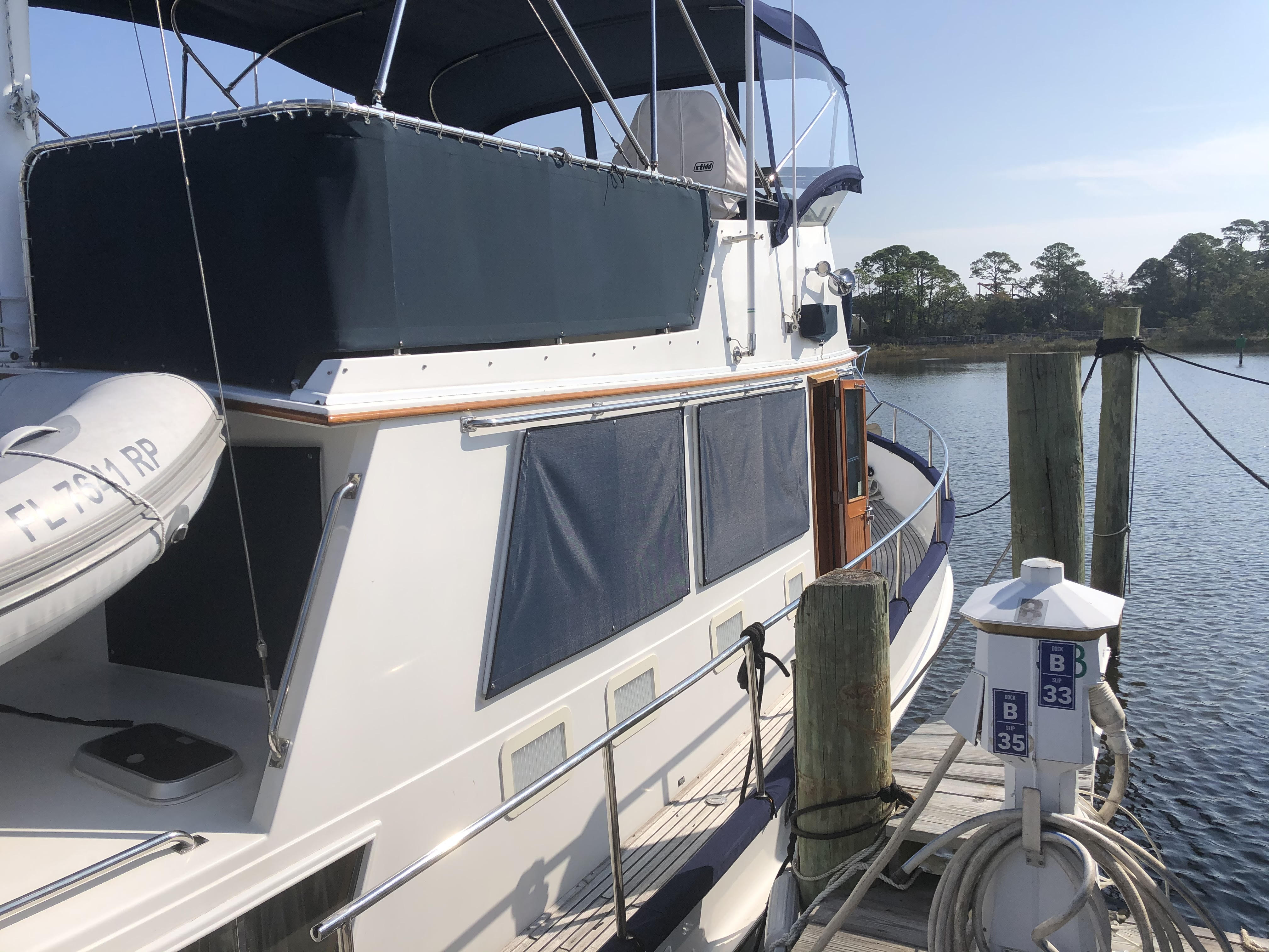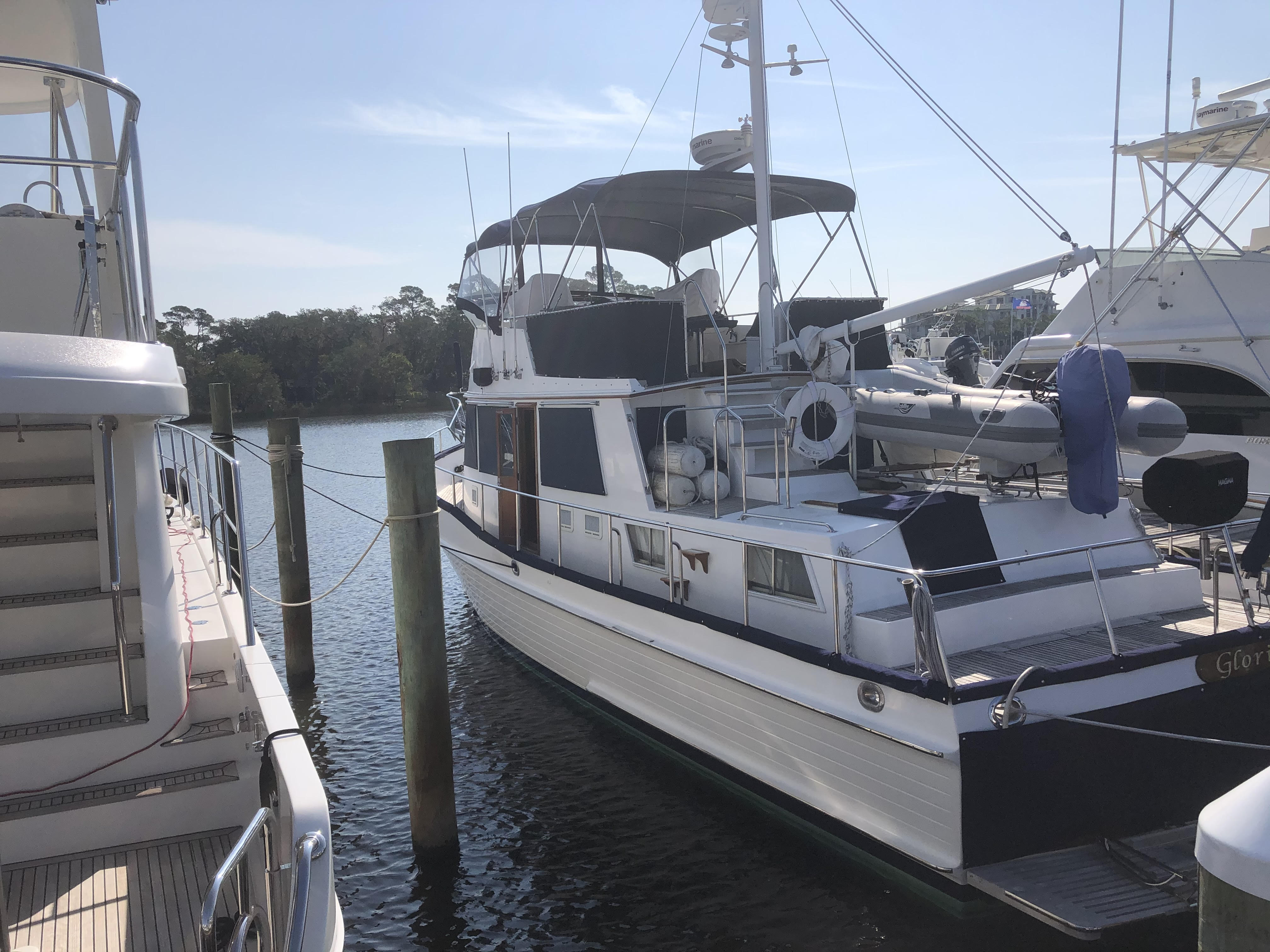 GloriaUs is a 2002 Grand Banks 42 Classic with NAID stabilizers, bow thruster, and updated Raymarine electronics at the upper and lower helm. She is powered by twin Caterpillar 3126B diesel engines each generating 420hp. There are two side entry doors into the salon, both port and starboard. The salon has a large L-settee to starboard and a straight settee across to port. Forward is the lower helm area to starboard and galley opposite to port. The aft master stateroom has an island queen berth with private en suite head and sink, and separate shower stall. The forward quest stateroom offers a V-berth with a private en suite head.